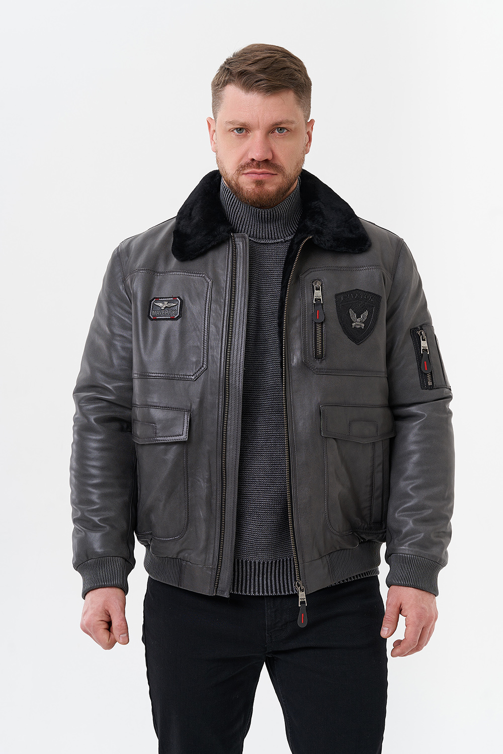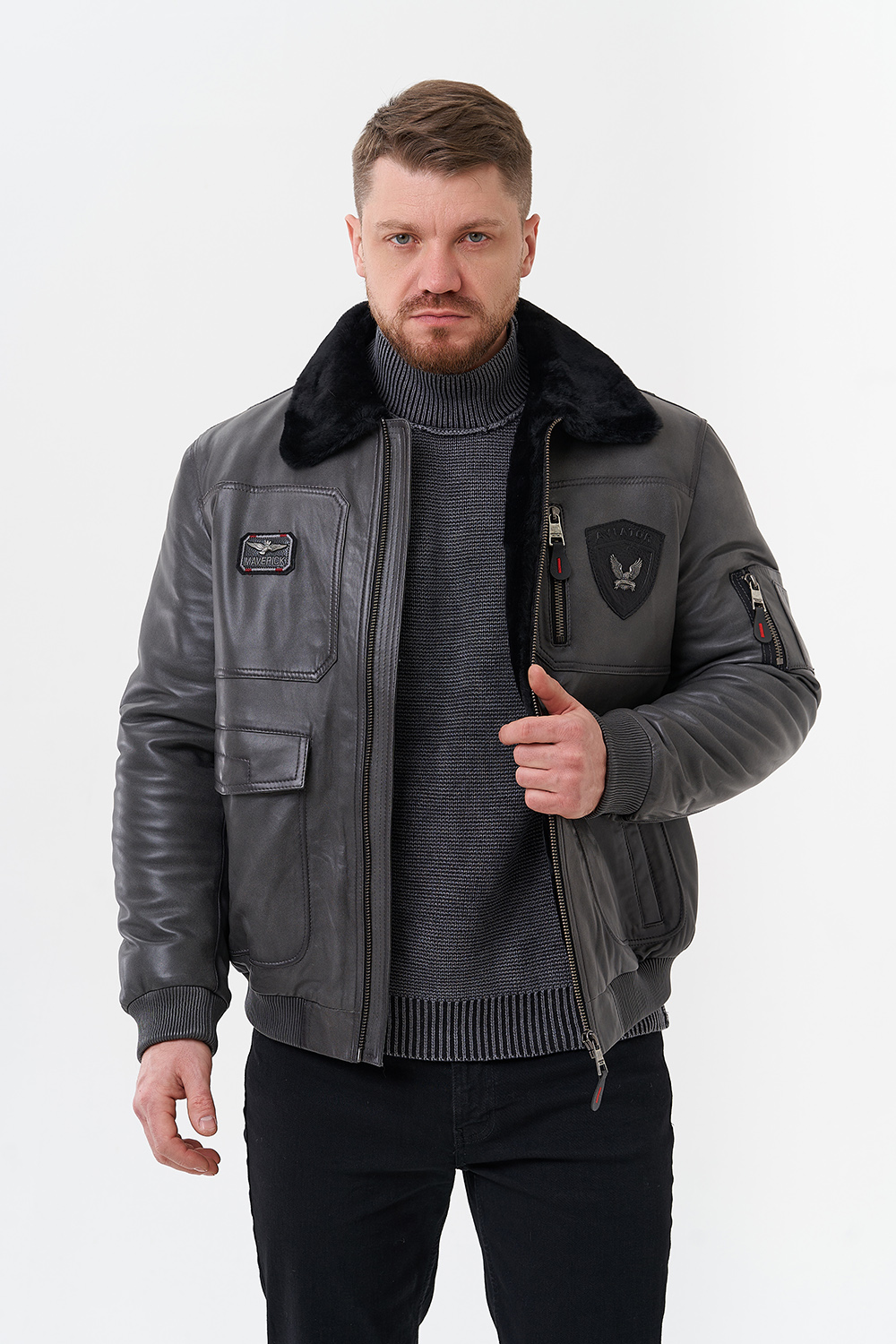 Тип ворота - отложной, отделка овчина черная