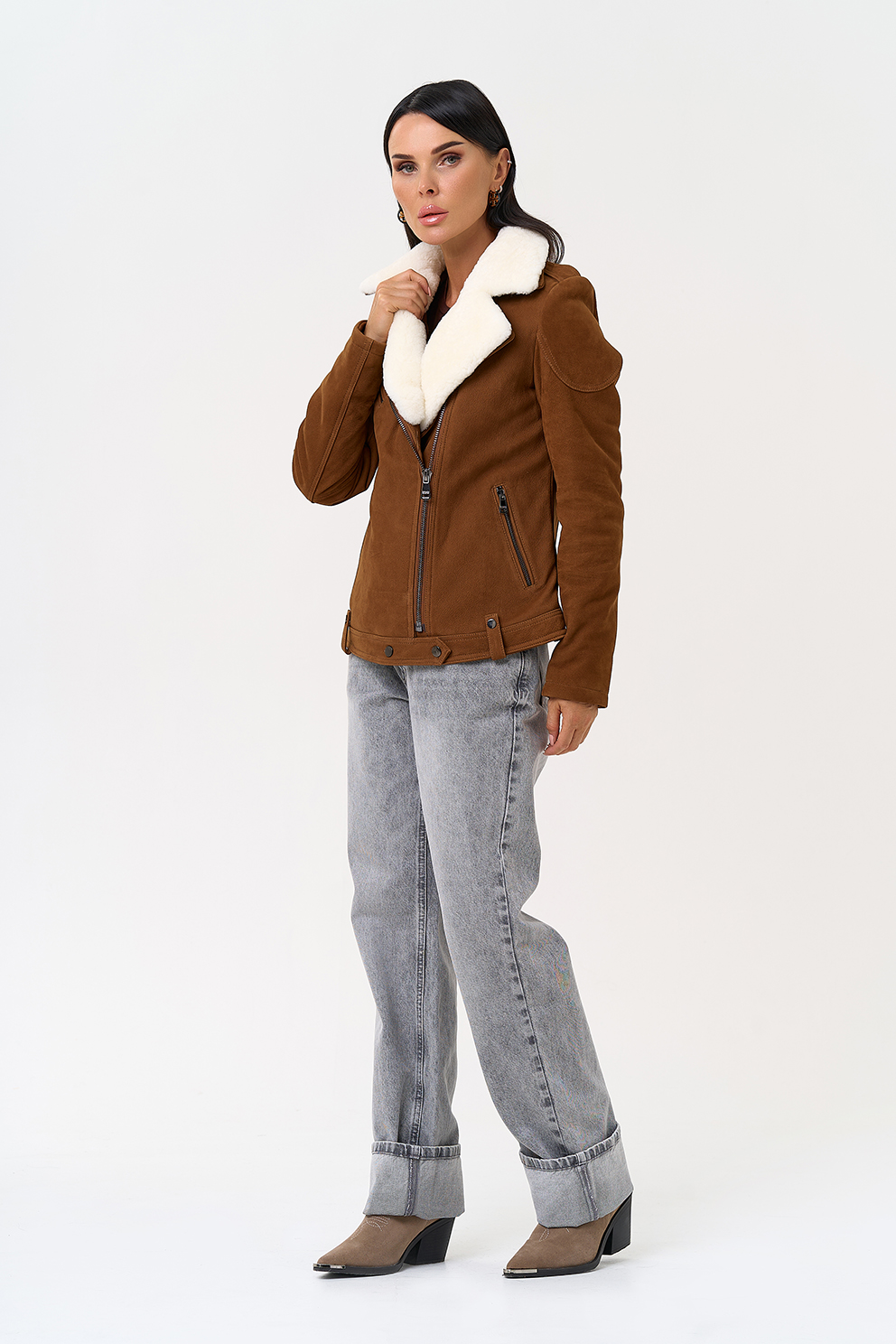 Тип ворота - английский воротник, отделка овчина